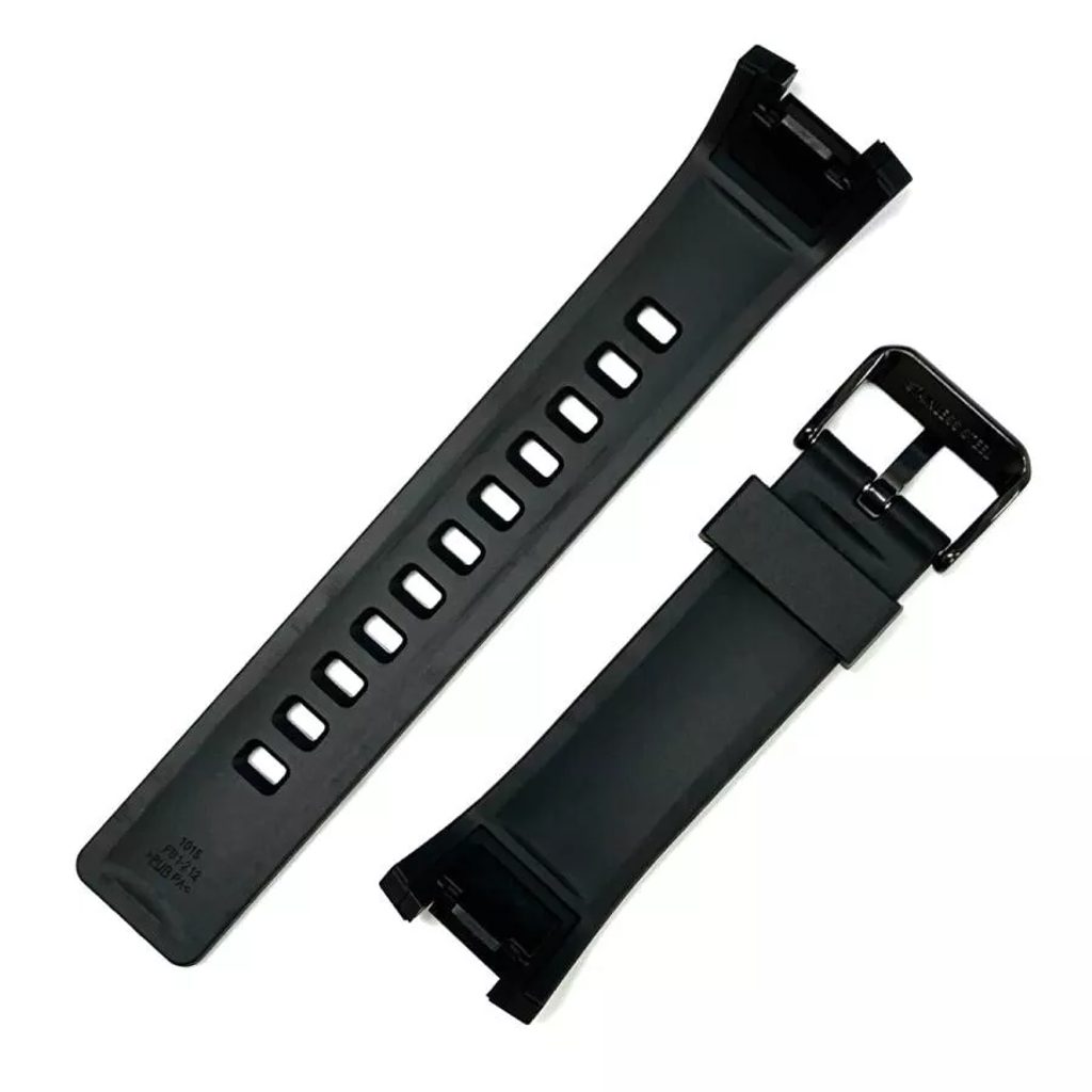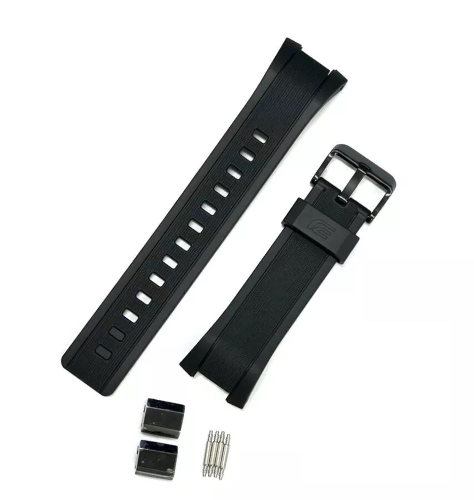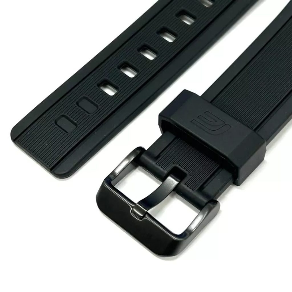 Original Casio resin strap in black with black steel buckle for Casio Edifice ECB-2000PB-1AEF.