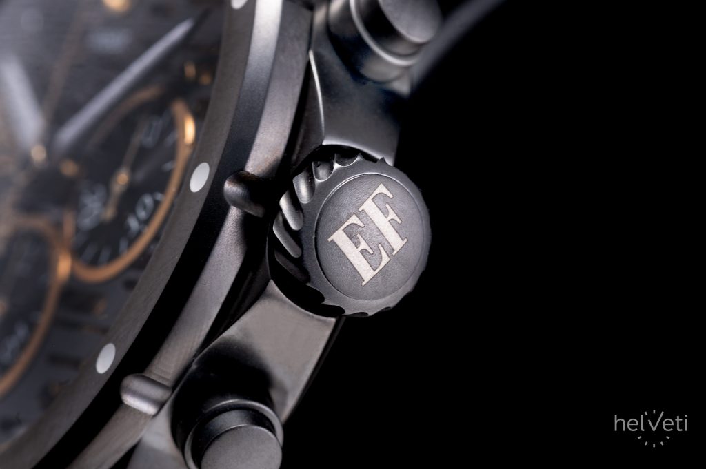 The Robot Minor Emerson Fittipaldi Limited Edition is the result of a collaboration between the Czech Robot manufactory and a motorsport legend and two-time winner of the Formula 1 series. The watch in a lightweight and durable titanium case impresses with its original racing design, dominated by a dial in golden-black tones, with Emerson Fittipaldi's signature.