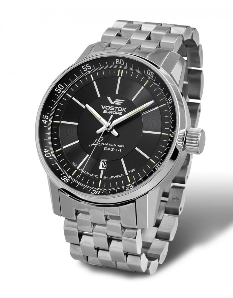 Original metal strap for Vostok Europe watches from the GAZ 14 Limousine model series . The strap is made of surgical polished steel in a width of 23 mm.