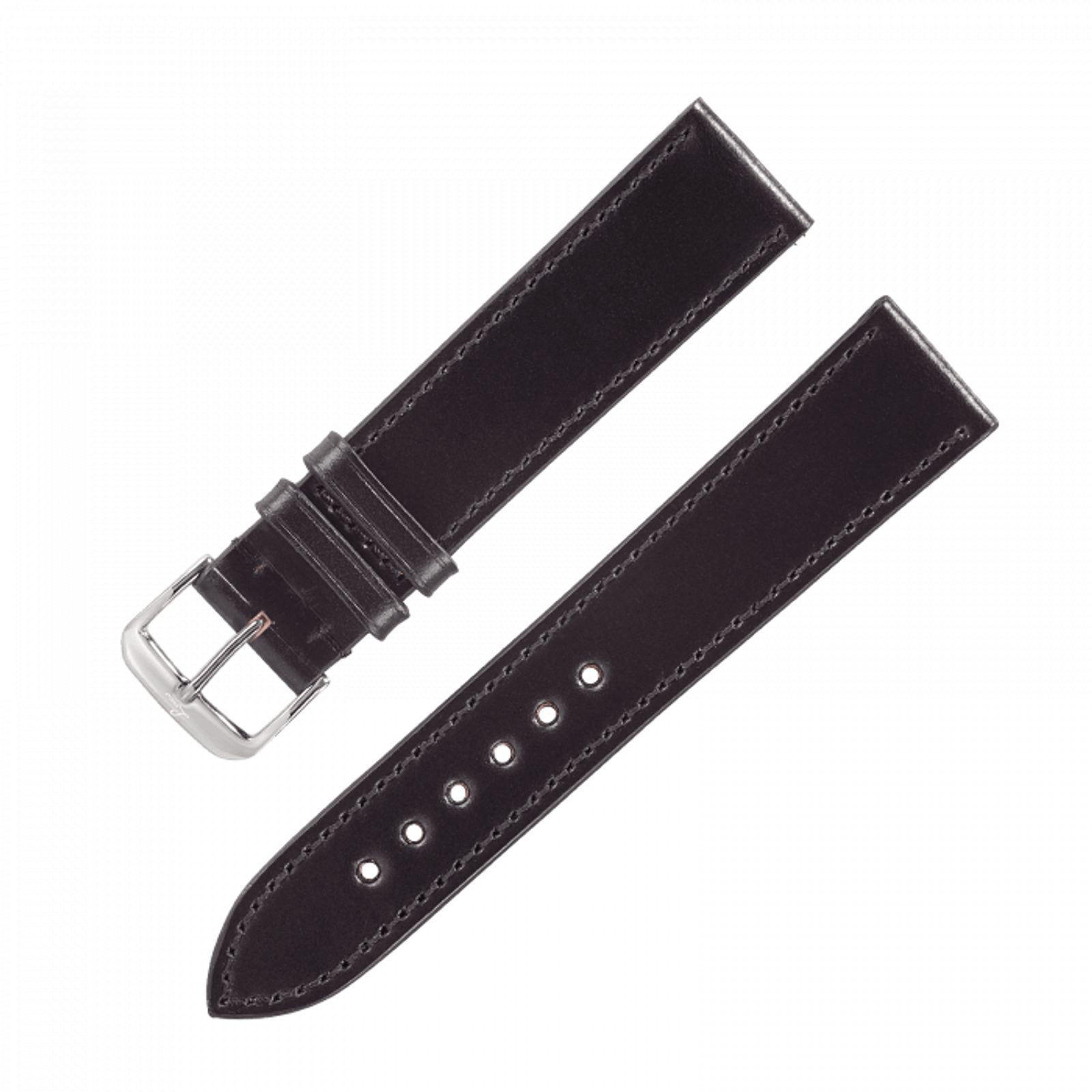 The Laco Cordovan black strapis an elegant strap, made of high quality Shell Cordovan leather. This fine horsehide is particularly durable. Thanks to the relatively high amount of fat contained in the leather, it is virtually indestructible and also waterproof. For this reason, it is mainly used for the production of high-quality men's footwear and leather accessories. Another special feature of Cordovan leather is its fine sheen. This is achieved at the end of the production process by the "smearing" technique, in which heated oil is rubbed into the leather by hand. Almost all of the leather production processes are carried out by hand. Production takes almost 6 months and is currently only carried out in a handful of tanneries.