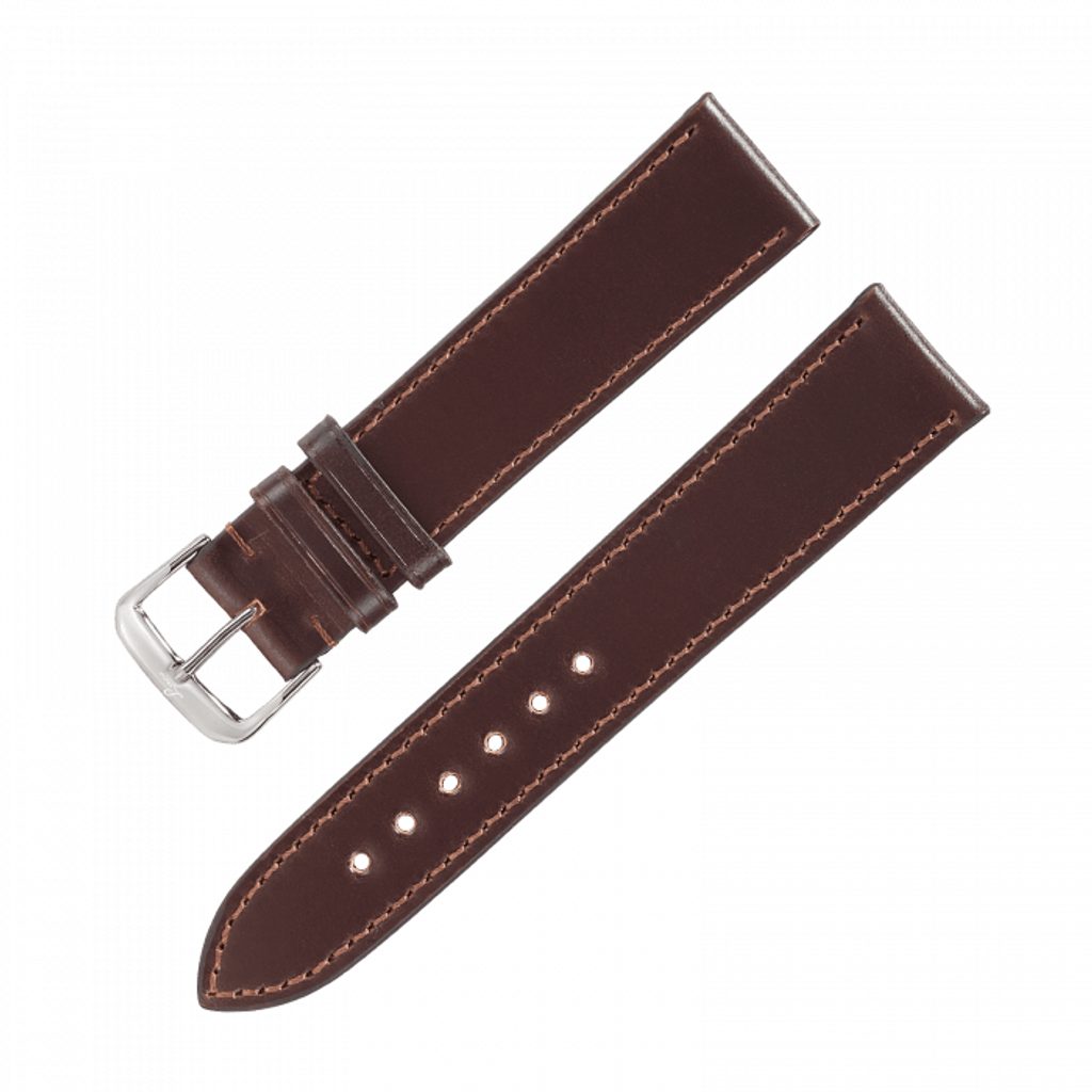 The Laco Cordovan brown strap is an elegant strap, made of high quality Shell Cordovan leather. This fine horsehide is particularly durable. Thanks to the relatively high amount of fat contained in the leather, it is virtually indestructible and also waterproof. For this reason, it is mainly used for the production of high-quality men's footwear and leather accessories. Another special feature of Cordovan leather is its fine sheen. This is achieved at the end of the production process by the "smearing" technique, in which heated oil is rubbed into the leather by hand. Almost all of the leather production processes are carried out by hand. Production takes almost 6 months and is currently only carried out in a handful of tanneries.