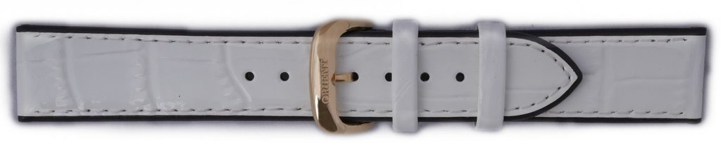 The original white leather Orient strap with a width of 19 mm boasts a practical gold-coloured buckle and a stylish design. Its high-quality workmanship and unique look also add a touch of elegance to your watch.