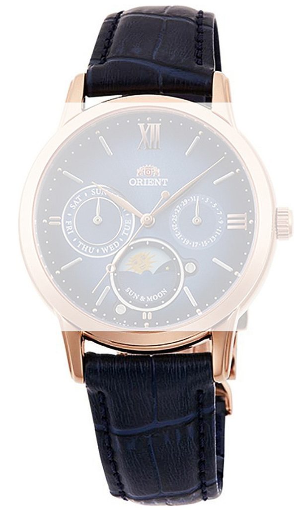 The original Orient leather strap with a width of 17 mm boasts a practical folding clasp in rose gold and a stylish design. Its quality craftsmanship and unique look also add a touch of elegance to your watch.