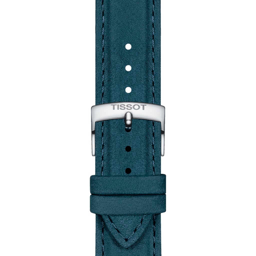 The original blue Tissot T852.048.227 strap is made of cowhide leather and features an easy quick-release system and a classic stainless steel thorn buckle.