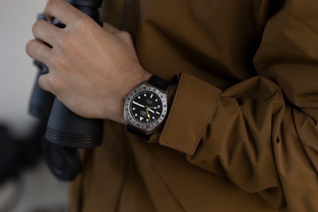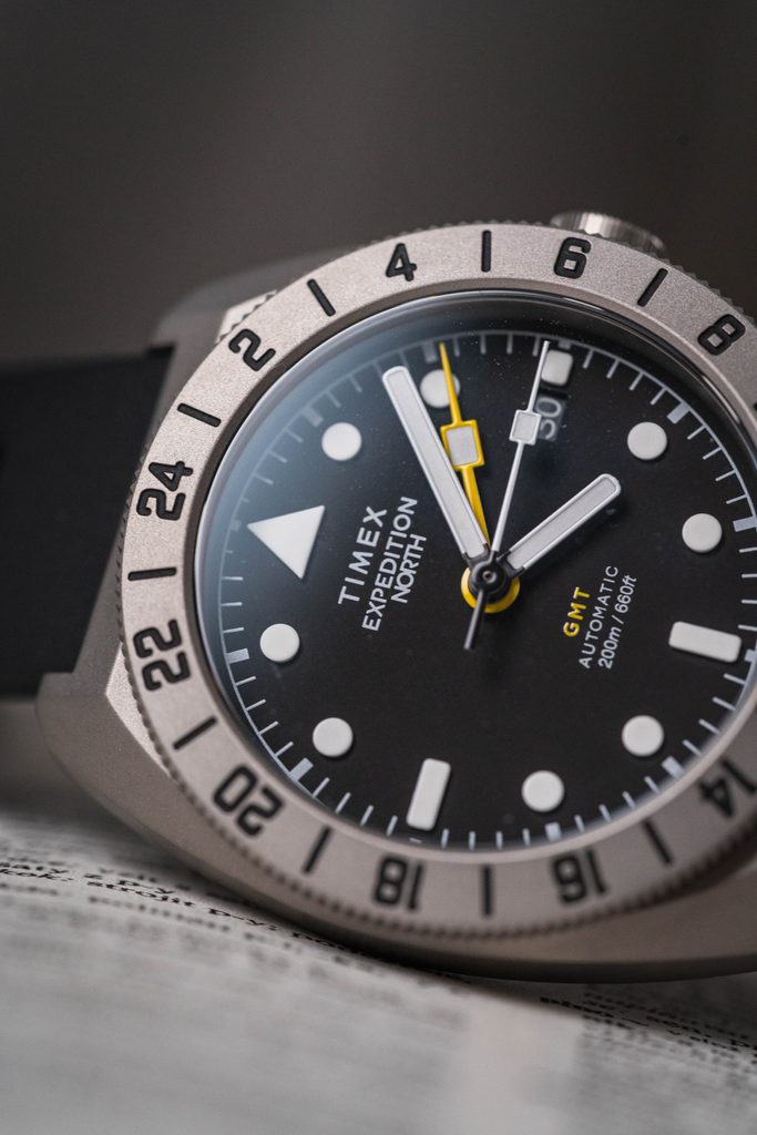A matt finish is applied to the 41 mm titanium case . The black dial serves as a backdrop for the distinctive solid hands and indices - both of which are luminescent. All protected by a sapphire crystal that is highly scratch-resistant.