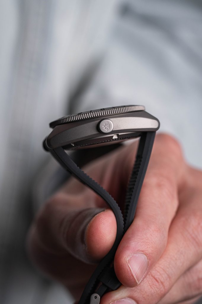 The mechanical watch with automatic winding has a water resistance of 200 m ( 20 ATM), making it able to handle not only basic contact with water, but also swimming. The model is equipped with a black silicone strap 20 mm wide with a thorn buckle. However, thanks to the Quick Release system, you can conveniently accessorize the watch with, for example, a leather strap in a different colour.