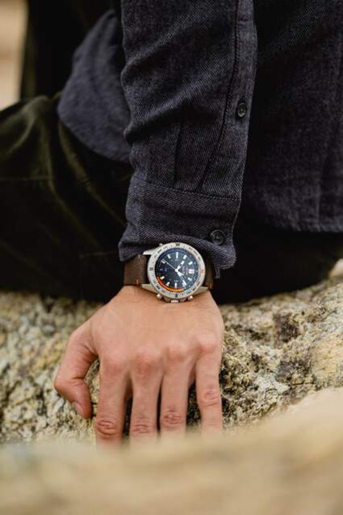 The sturdy 43 mm steel case houses a black dial that serves as the base for the distinctive hands and indices - both of which are luminescent for even better legibility. In addition to the hands, the dial also features a double-sided central arrow, which acts as a compass. The watch is perfect for adventurous challenges, not least thanks to its thermometer and tide tracker functions. All protected by a high-quality sapphire crystal.