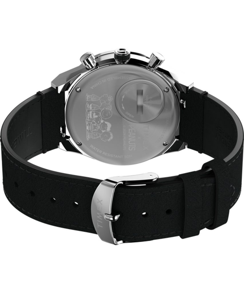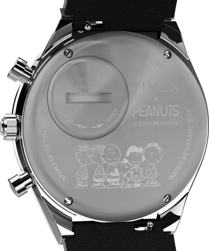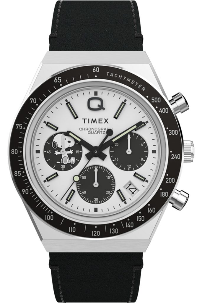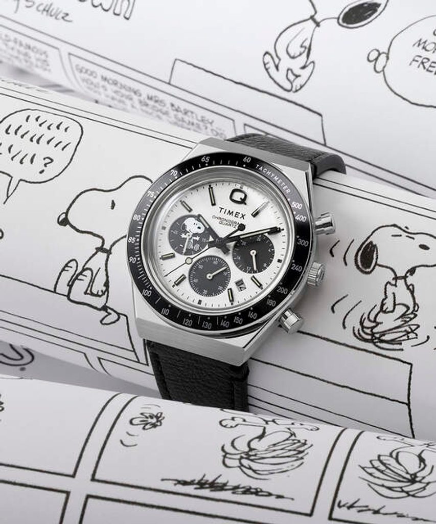 The Timex TW2W68900UK men's watch combines the popular Q collection , which features a distinctive sporty design, and the playful Peanuts® collection, which pays homage to the legendary comic strip.