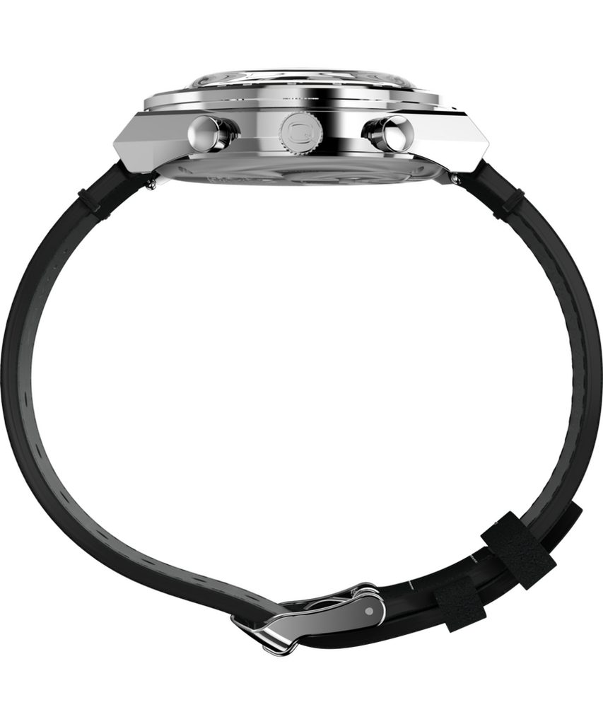 The battery-powered quartz watch has a water resistance of 50 m ( 5 ATM), so it can handle basic contact with water during hand washing, rain or showering. The model is equipped with an 18 mm wide leather strap. Thanks to the Quick Release system, you can conveniently accessorize the watch with a sportier silicone strap, for example.