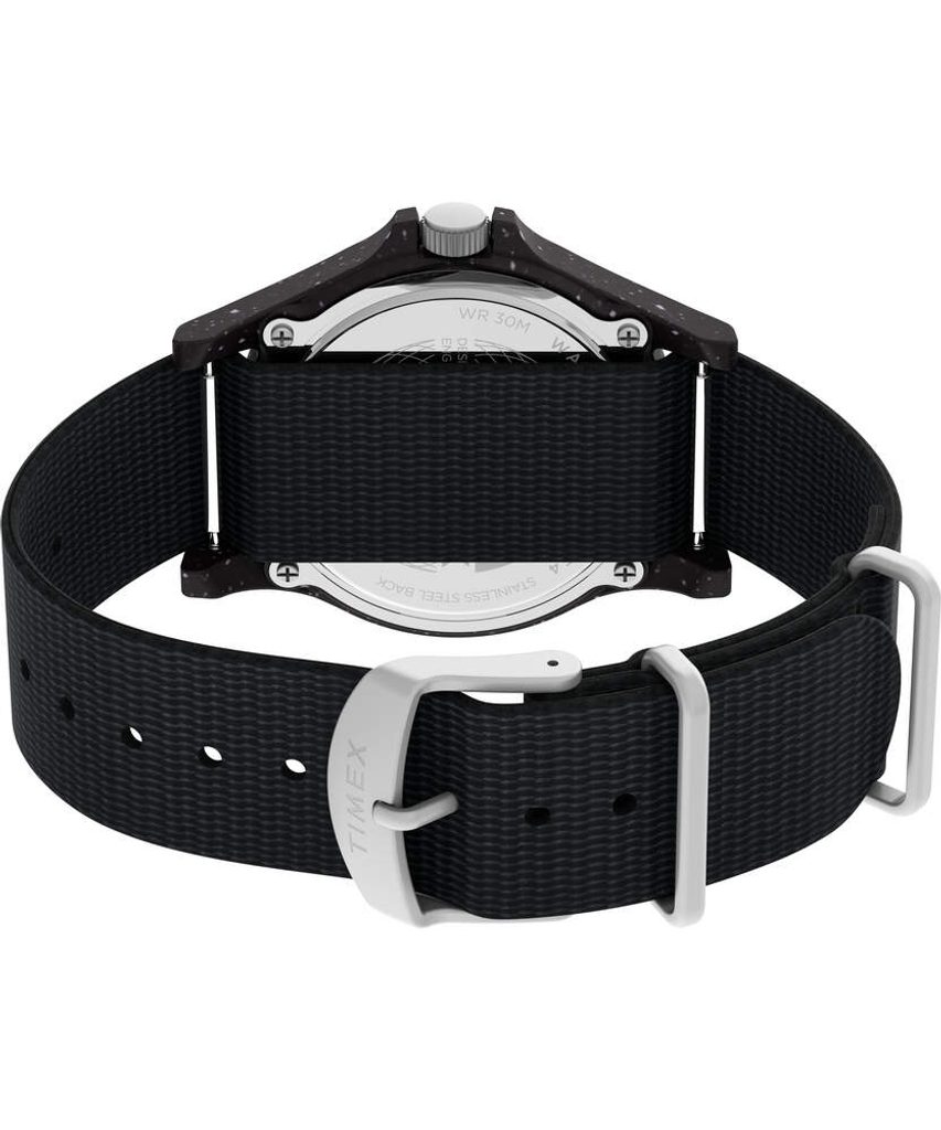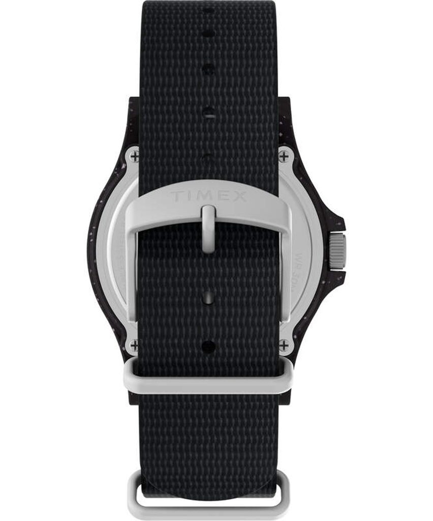 The battery-powered quartz watch has a water resistance of 30 m ( 3 ATM), so it can handle basic contact with water when washing hands or in the rain. The model features an 11.5 mm wide bracelet made of recycled #tide ocean material®, which perfectly matches the case design.