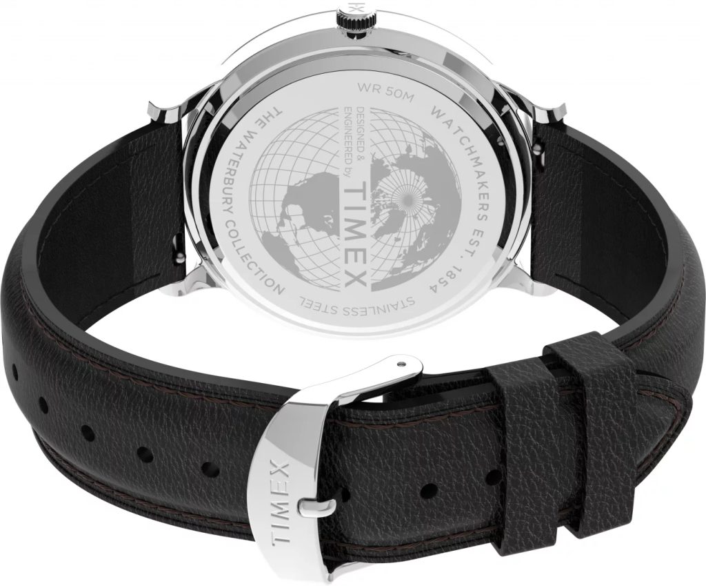 The battery-powered quartz watch has a water resistance of 50 m ( 5 ATM), so it can handle basic contact with water during hand washing, rain or showers, but can also cope with swimming. The model is equipped with a leather strap with a width of 20 mm, and for this reason we do not recommend too frequent contact with water. However, thanks to the Quick Release system, you can comfortably add a sportier silicone strap, for example.