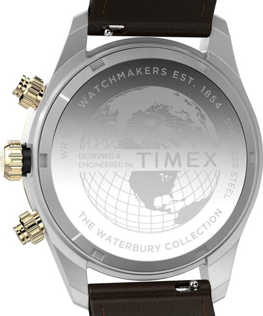 The Timex watch from the Waterbury collection is a men's model that offers a clear design with elegant features.