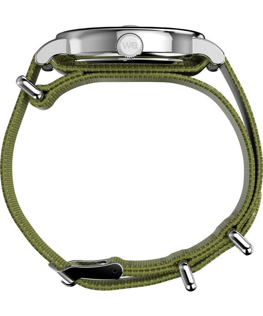 The battery-powered quartz watch has a water resistance of 50 m ( 5 ATM), so it can handle basic contact with water when washing hands or in the rain. The model features a green nato strap with a width of 20 mm.
