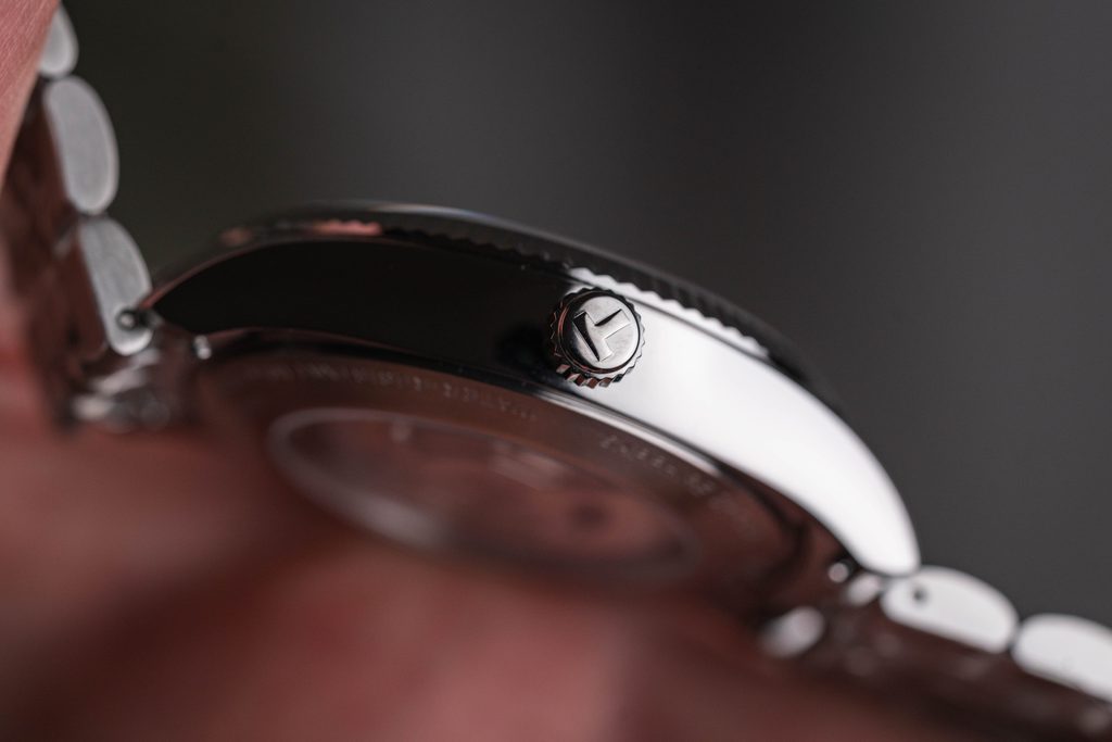 The interchangeable bracelet, which is equipped with an easy quick-release system (quick release), offers maximum versatility and makes it easy to change the look of the watch. Thanks to its water resistance to 100 metres (10 ATM) , there is no need to remove the watch from the wrist even when swimming or snorkelling.