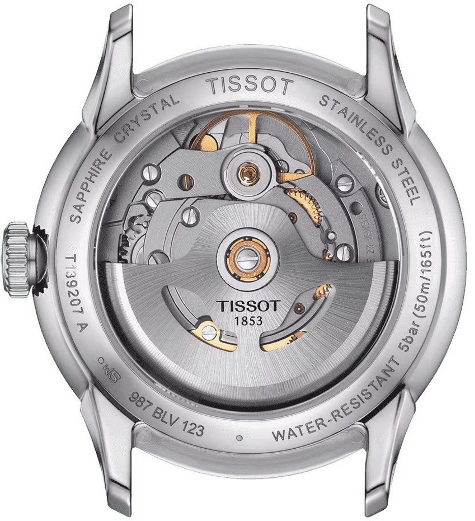 The Tissot T1392071104800 watch has a case made of stainless steel, which is complemented by a bracelet made of the same material. Inside it, a Swiss mechanical movement with automatic winding Powermatic 80.111 works reliably, whose operation can be observed through the transparent caseback. It is based on the reliable ETA 2824, runs at a frequency of 21,600 semi-frequencies per hour and has 23 stones. The winding reserve is an above-standard 80 hours. The flywheel of this movement is made of Nivachron alloy, which is more resistant to magnetic field and temperature changes and has the effect of improving the accuracy of the watch. The movement has a "hacking" function (stopping the seconds hand when ordered) and the possibility of manual winding with the crown.