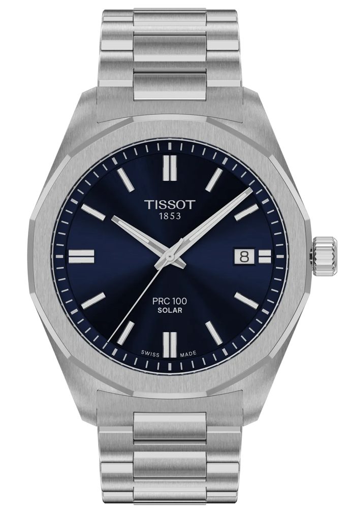 The Tissot PRC 100 Solar Quartz 39mm T151.422.11.041.00 is a T-Sport watch. This model series offers watches with a modern design, dominated by a 12-sided lunette around the glass. In conjunction with the universal 39 mm size, it fits well on both men's and women's wrists.