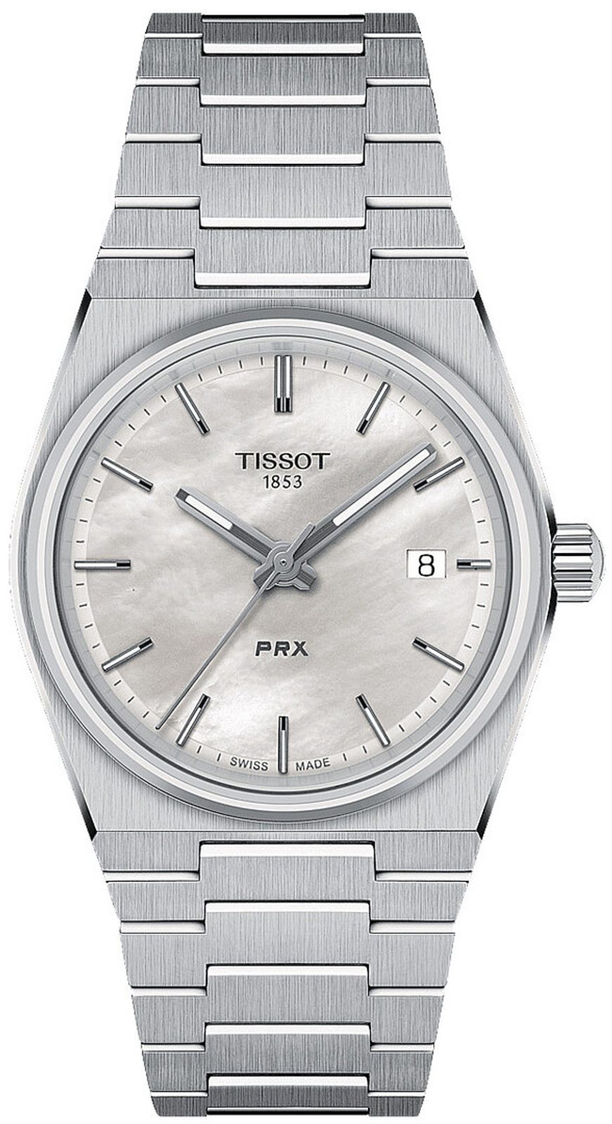 The Tissot PRX 35mm T137.210.11.111.00 is a T-Classic watch. The watch impresses at first glance with its unusual barrel-shaped case and bracelet connection.