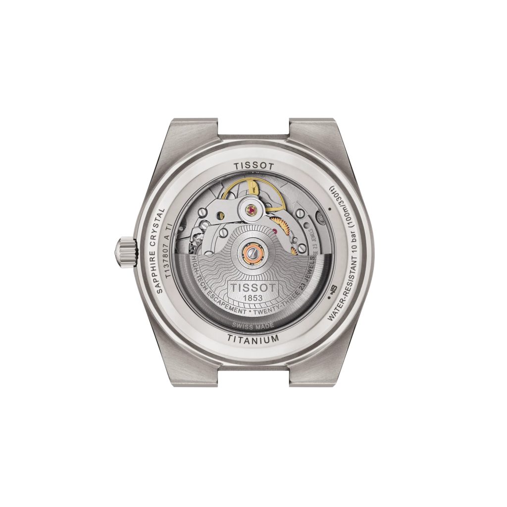 The Tissot T1378074404100 is powered by the Powermatic 80.111 automatic movement, which boasts a power reserve of up to 80 hours, which is twice as high as is common with automatic movements in this price range. It is fitted with 23 jewels and its 21,600 semi-frequencies per hour can be observed through the transparent dial. The movement is "built" on the basis of the ETA 2824 variant. The flywheel of this movement is made of Nivachron alloy, which is more resistant to magnetic fields and temperature changes and has the effect of improving the accuracy of the watch. Besides the time function, it is also equipped with a date display. This can be found at the 3 o'clock index. The hour and minute hands, as well as the indices, are coated with a luminescent coating for better time reading in twilight or darkness.