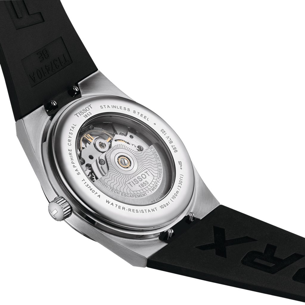 In the PRX model, the Tissot brand has resurrected a design from the 1970s. It references the pioneering work of watch designer Gérald Genta. Genta was responsible for icons such as the Universal Geneve Polerouter, the Audemars Piguet "Royal Oak", the IWC Ingenieur and the Patek Philippe "Nautilus". The PRX designation itself stands for "P" for Precise, "R" for Robust and "X" for the Roman numeral ten and a water resistance of 10 bar.