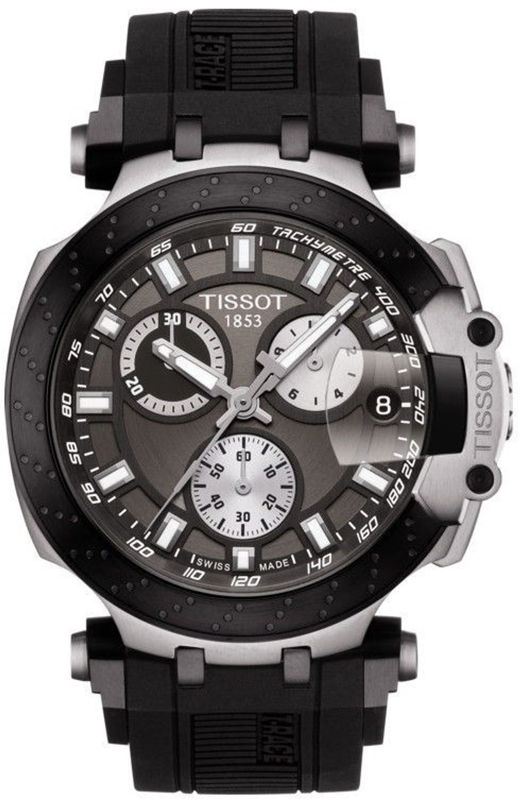 The Tissot T-Race T115.417.27.061.00 men's watch belongs to the T-Sport series and the T-Race sub-range. This model series features a motorsport-inspired design, as their official timekeeper of the Moto GP competition since 1999.