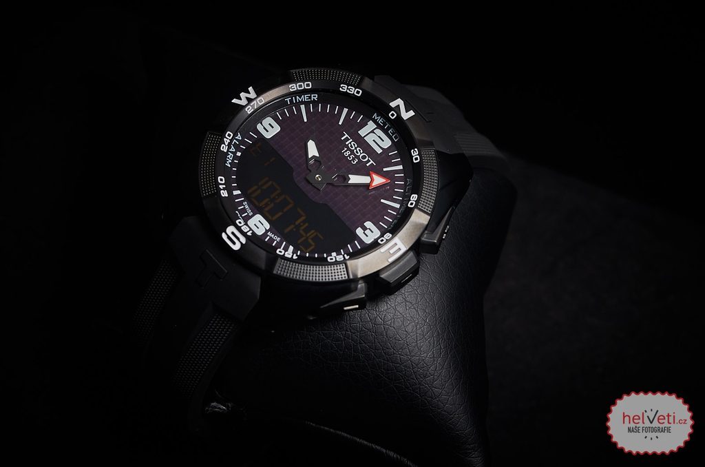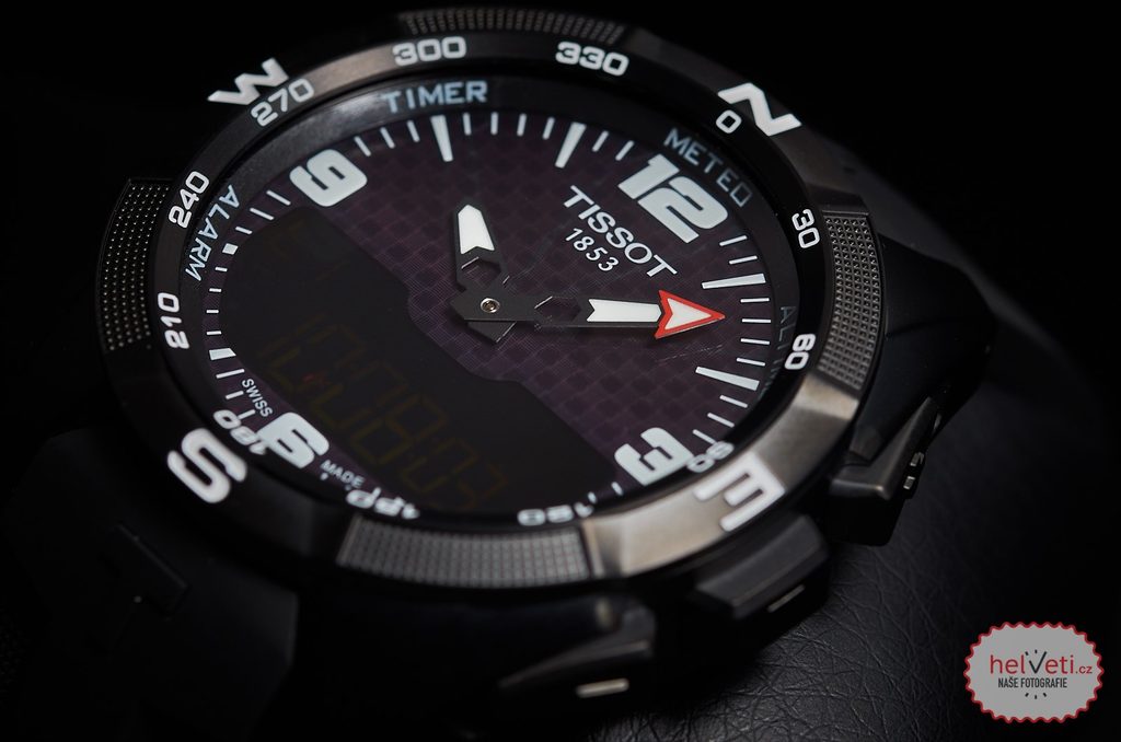 The case of the sporty Tissot T091.420.47.057.01 model is made, like their bracelet, from titanium and hides a solar-powered Swiss ETA E84.301 movement. It has functions such as a calendar, alarm, stopwatch or dual time, while a compass, barometer or altimeter will come in handy for outdoor activities. A sapphire touch glass with anti-reflective treatment will make it easier to operate all the available functions displayed on the combined dial.