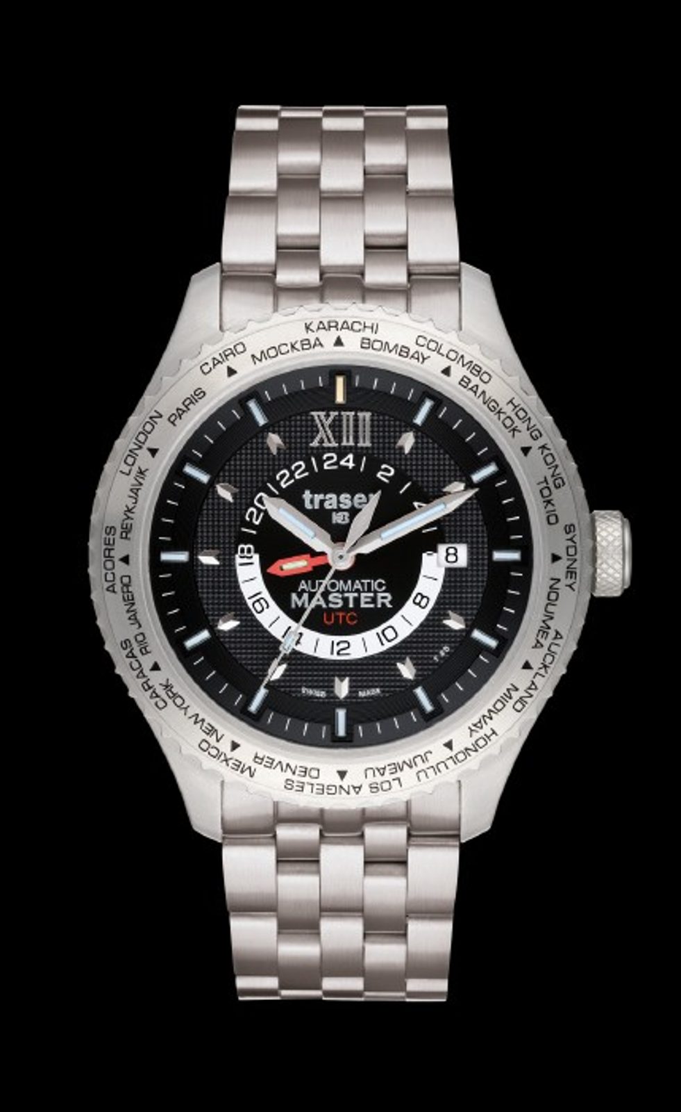 The Traser Classic Automatic Master Utc model features a second time zone setting, mechanical movement with automatic winding, trigalight luminous technology and sapphire crystal. It also impresses with its large dimensions. There is a choice of three strap types: black silicone, black leather, or steel.