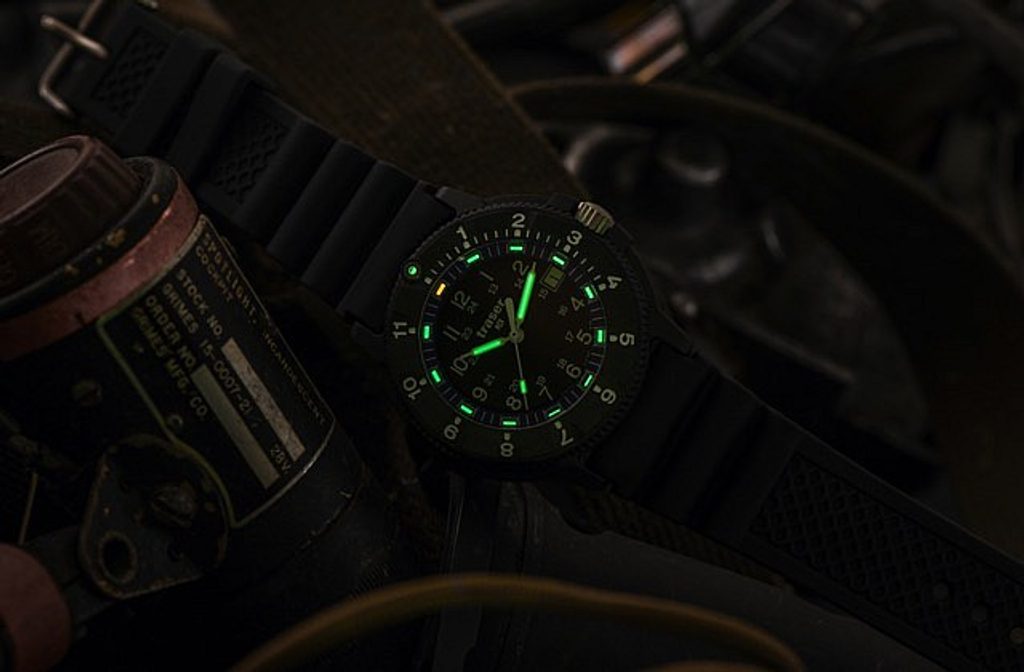 Other features include an anti-reflective sapphire crystal that eliminates glare and resists scratches in the field. The bi-directional lunette - ergonomically shaped for operation even with gloves on - allows for accurate elapsed time measurement on any mission. A date window at the 3 o'clock position completes a dial designed solely with clarity in mind. The hands and indices are fitted with tubes with Trigalight technology, which ensures readability in the dark, without any illumination, for up to 15 years. Matte dial, white Arabic numerals on a pure black background - every detail faithfully reproduces the style of the much-loved vintage Traser P6500 Type 6.