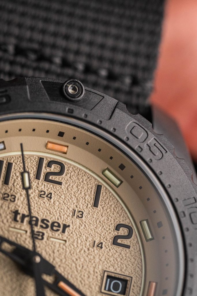The case of the Traser P96 OdP Color Sand is made of polyamide reinforced with fiberglass, resulting in a durable and lightweight watch weighing just over 70 grams. The watch is equipped with a Ronda 515 quartz movement and a scratch-resistant sapphire crystal. The great advantage of the model is its water resistance of 20 atmospheres (200 m).