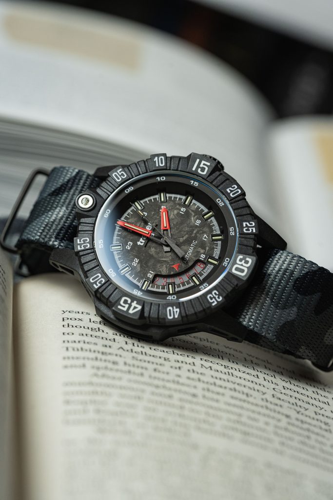 The Traser P99 A Tactical Carbon Camo Nato is a durable watch with a military look. Sophisticated case construction, selected durable materials such as carbon and steel. Of course, the Trigalight and SuperLuminova technology is not to be missed.