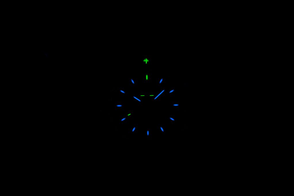 Anti-reflective sapphire crystal glass is a matter of course. This provides not only the traditional scratch resistance but also the necessary legibility in bright sunlight. The hands and indices are fitted with tubes with Trigalight technology, which ensures readability in the dark, without any illumination, for up to 15 years. SuperLuminova technology is applied to the rotating lunette and glass seal. The hallmark of this watch is the luminescent cross on the lunette at the "12" position. With a water resistance of up to 200 meters, the watch can also be used when swimming, snorkeling or diving. A screw-down crown ensures a better seal of the case.
