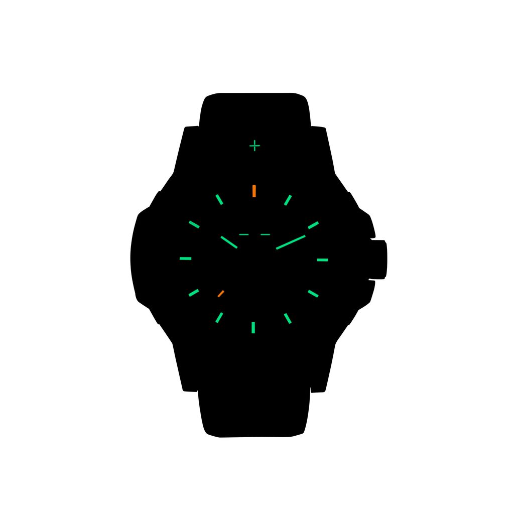 Anti-reflective sapphire crystal glass is a matter of course. This provides not only the traditional scratch resistance but also the necessary legibility in bright sunlight. The hands and indices are fitted with tubes with Trigalight technology, which ensures readability in the dark, without any illumination, for up to 15 years. SuperLuminova technology is applied to the rotating lunette and glass seal. The hallmark of this watch is the luminescent cross on the lunette at the "12" position. With a water resistance of up to 200 meters, the watch can also be used when swimming, snorkeling or diving. A screw-down crown ensures a better seal of the case.