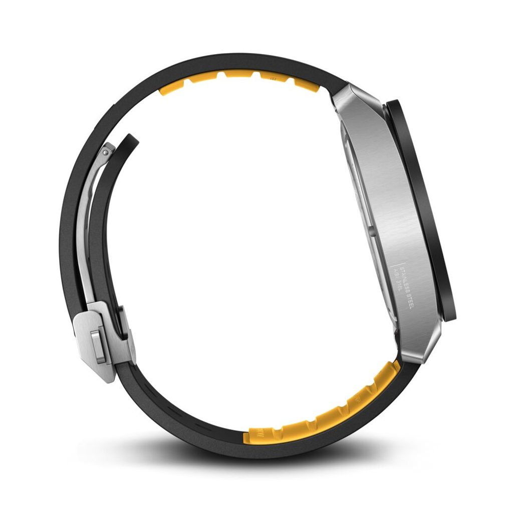 The watch is reliably waterproof during swimming and diving up to a depth of 10 metres. The transparent dial is screwed on and the strap is made of rubber. You can change the strap yourself at home thanks to the quick-release system.