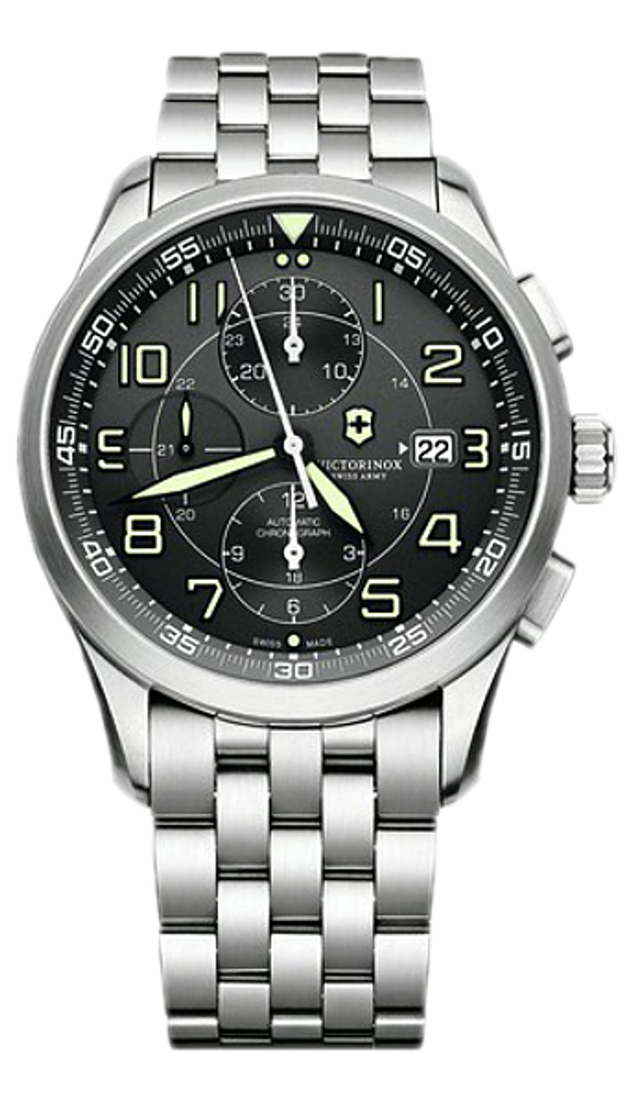 The Victorinox AirBoss Mechanical Chronograph 241620 combines the perfection of handcrafted watchmaking with modern functions. This social watch is powered not by a battery, but by an automatic movement that responds to the movement of the hand.