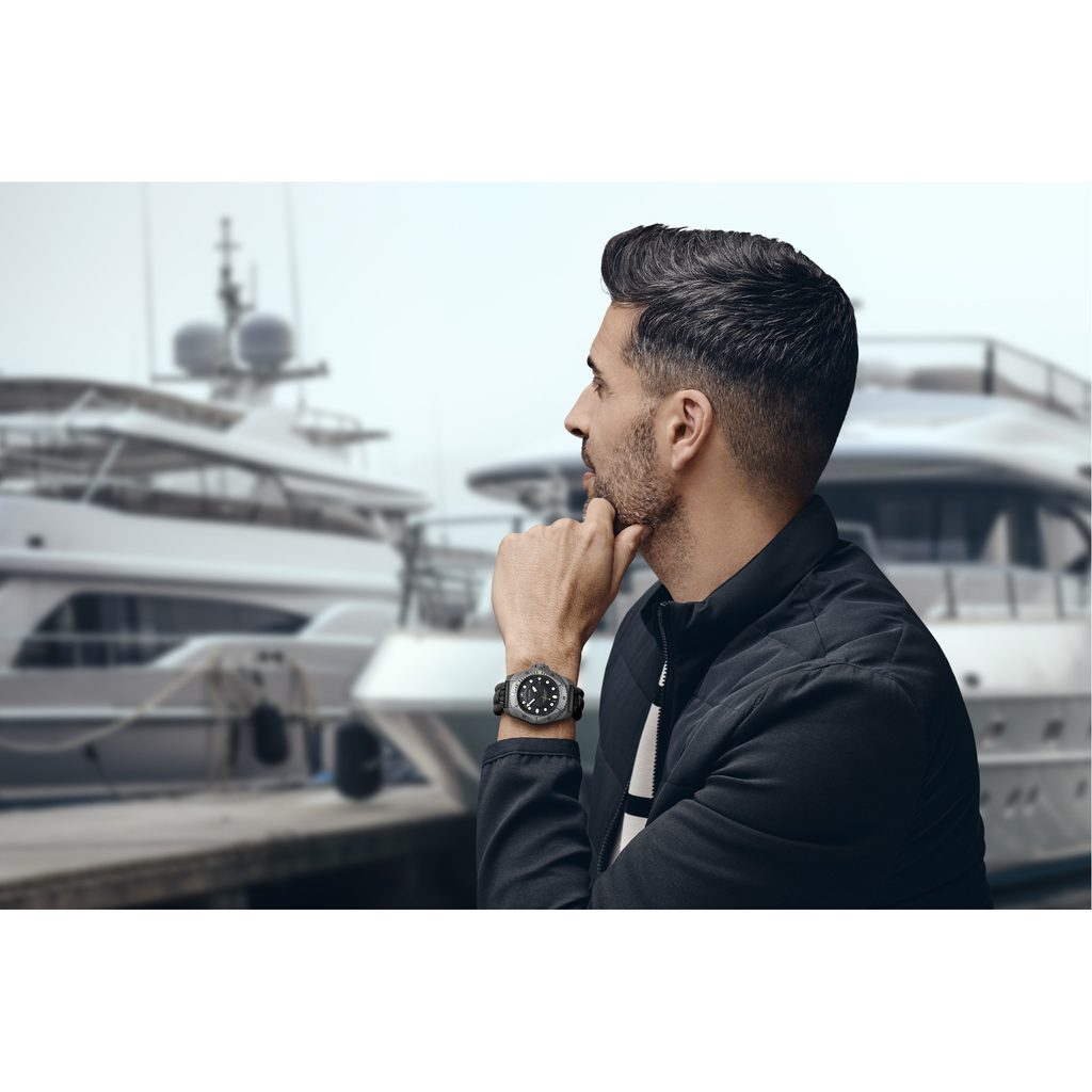 The movement is powered by a Ronda 715 movement with an EOL (end-of-life battery) indication, which alerts you to the need to visit a watchmaker soon to change the battery. Water resistance of 300 metres is supported by a screw-down crown and compliance with the ISO 6425 diving standard. Better legibility in low-light conditions is ensured by luminescence applied to the indices and hands.