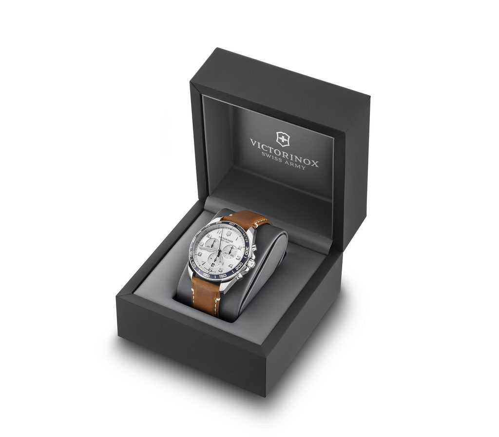 The Victorinox FieldForce Classic Chrono 241900 is powered by the Swiss Ronda 5030.D quartz movement, which features a date display and stopwatch. The hands feature a rich layer of SuperLuminova coating.