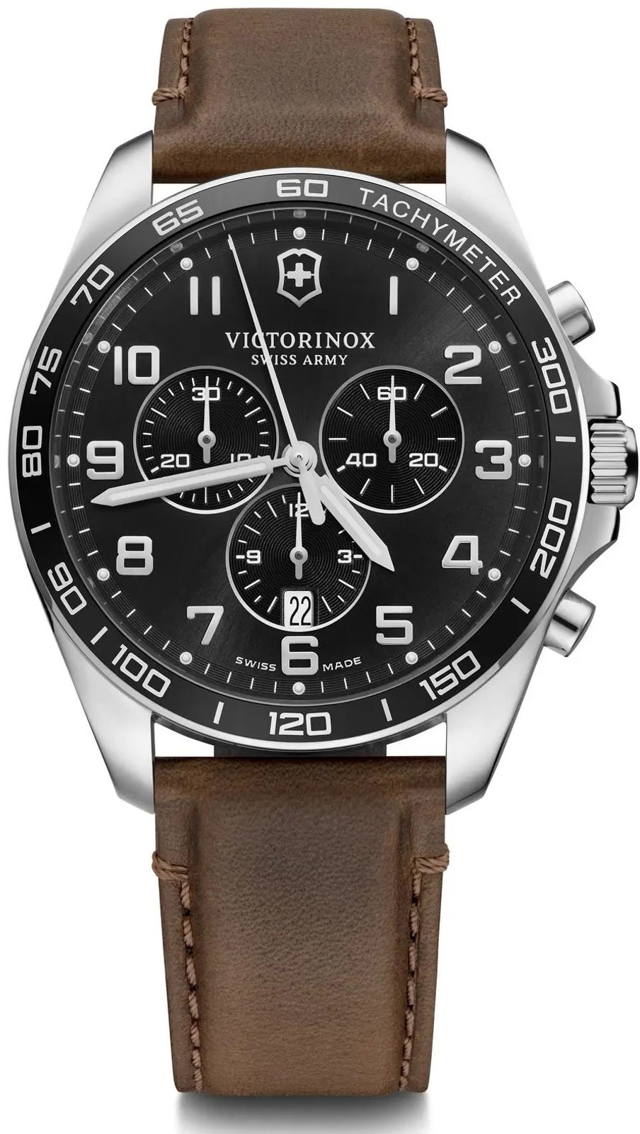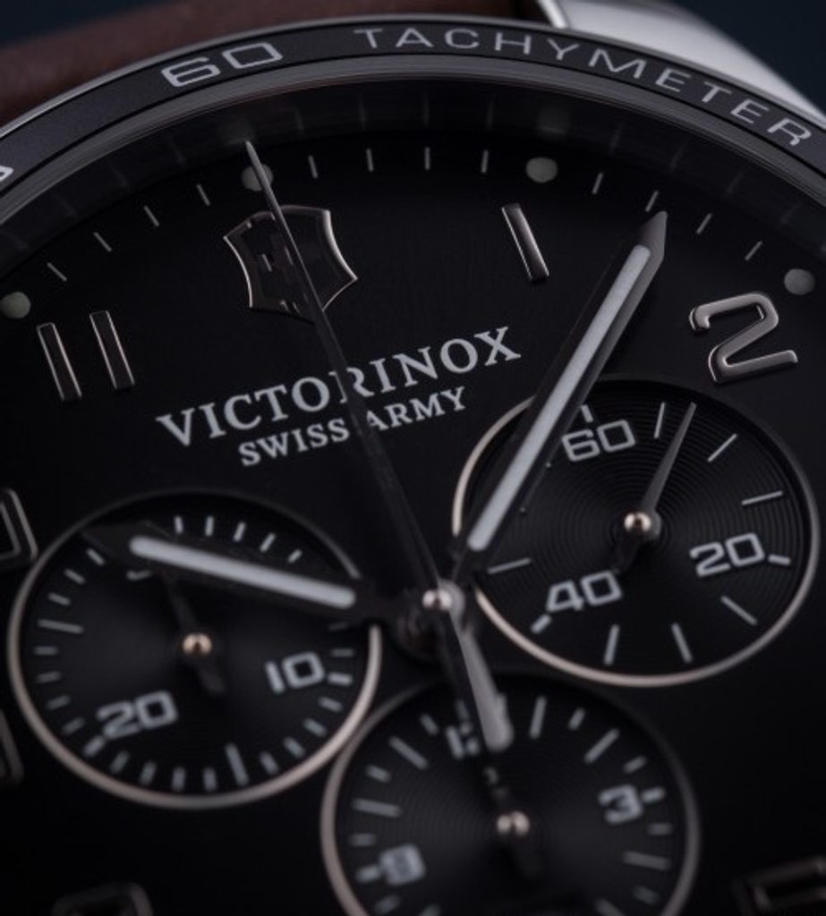 The Victorinox FieldForce Classic Chrono 241928 is powered by the Swiss Ronda 5030.D quartz movement, which features a date display and stopwatch. The hands feature a rich layer of SuperLuminova coating.