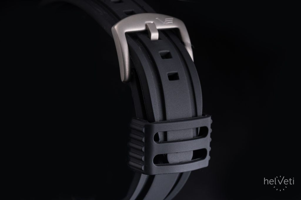 A total of 16 tritium capsules (13 on the indices, 2 on the hour hand, 1 on the minute hand) ensure perfect legibility even in low-light conditions. The seconds hand and the ends of the minute and hour hands are coated with Superluminova luminescent coating, which glows blue when illuminated. Superluminova can also be found on the lunette and on the inner circumference of the dial.