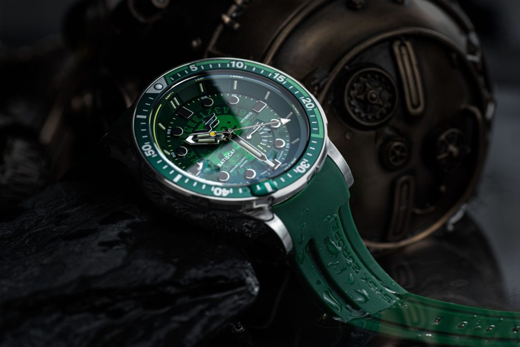 The semi-transparent dial is complemented by polished metal indices. For better legibility during low light conditions, tritium capsules are above these indices, which will always give us a perfect overview of the time. Tritium capsules are also found on the hour and minute hands. At the 6 position, there is a handy date indicator. At position 5 we find a retrograde day of the week indicator. Everything is protected by a hardened K1 mineral crystal with internal anti-reflective treatment.