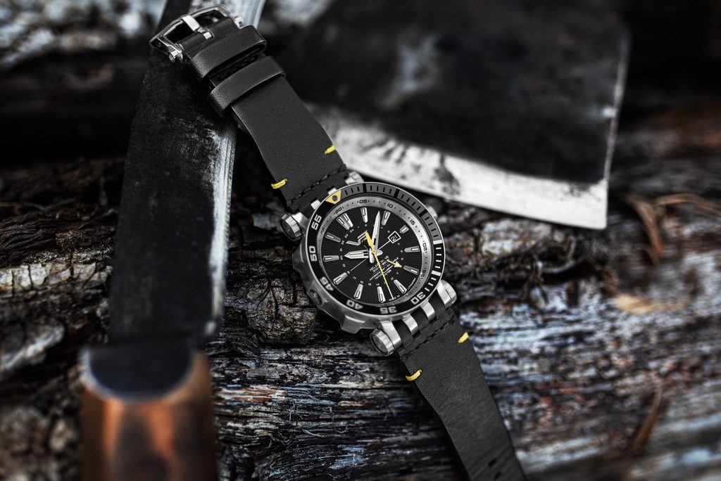 The dial is protected by a mineral tempered glass with an internal anti-reflective treatment. A total of 18 tritium capsules ensure perfect readability in the dark. They can be found on the indices, hands and lunette. Thanks to its 48 mm diameter, it will be an ideal choice for fans of larger watches.