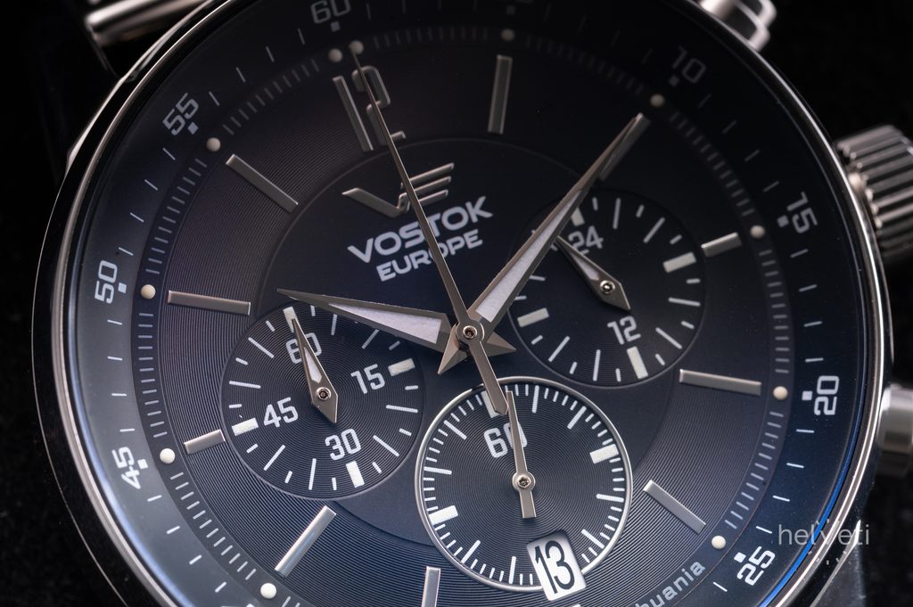 The case of the Vostok Europe GAZ-14 Limouzine Chrono VK63-560A690B is made of stainless steel. Inside we find a Japanese Seiko VK63 battery movement. It has a stopwatch function and a practical date display. The sub-dial at position 3 serves as a time display in 24-hour format.