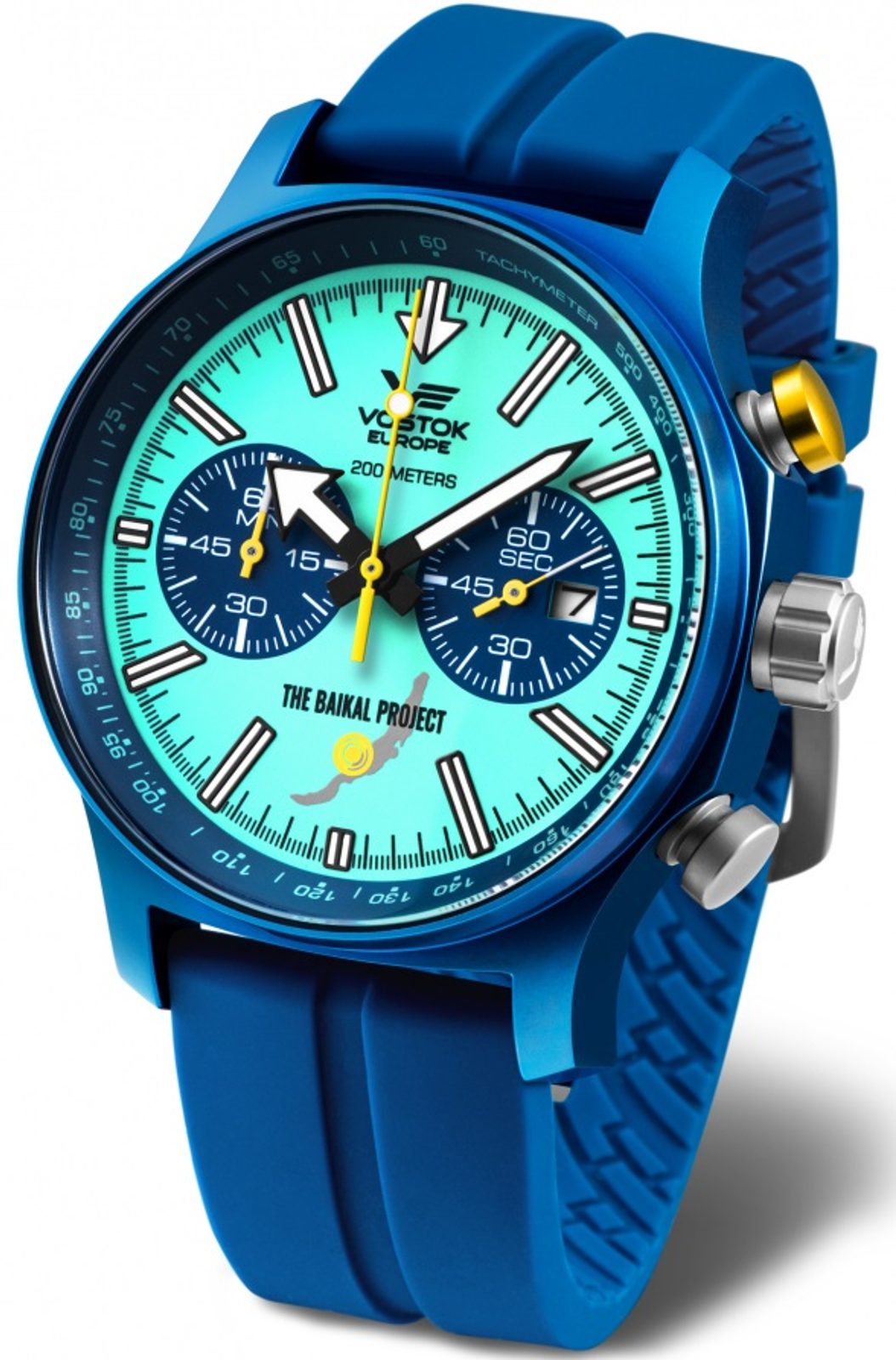 The case of the Vostok Europe Limited Edition Baikal 6S21-595E430 watch is made of stainless steel with a blue PVD finish. Inside is a battery-operated Japanese Miyota 6S21 movement , which features a stopwatch function and a handy date display. For better legibility in low light conditions, the hands and indices are equipped with Superluminova luminescence. Everything is protected by ahardened K1 mineral glass with an internal anti-reflective treatment.