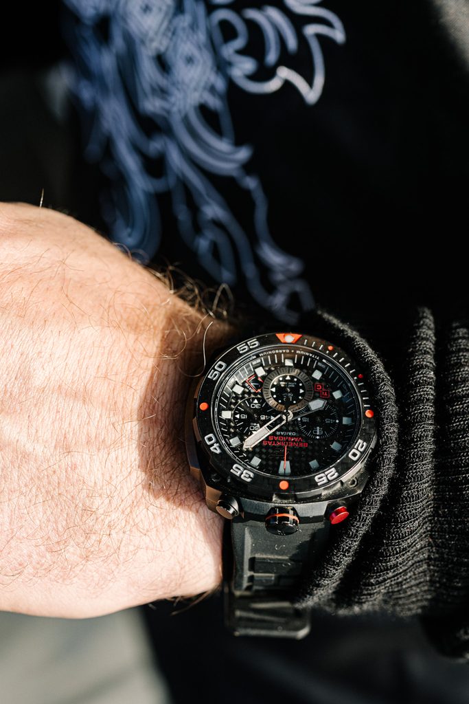 Each of the 500 limited edition pieces comes in a shockproof and waterproof plastic VE Dry Box, complete with a numbered card bearing Benedikt Vanagas' personal signature. Also included are a total of two straps with quick-release springs - silicone and leather.