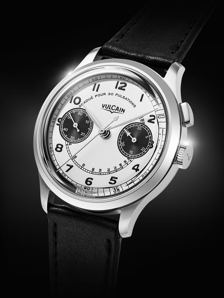The visual design of the original is retained, featuring numerals and hour markers that echo the iconic timepiece. Below the Vulcain emblem at 12 o'clock, the dial is marked "Chronomètre". Next to the minute track is a pulsometer scale with the note "Graded for 30 pulsations" in the original French. The only update is the movement: the watch is now powered by a manual-winding SELLITA SW 510 calibre with an extended power reserve of 58 hours.