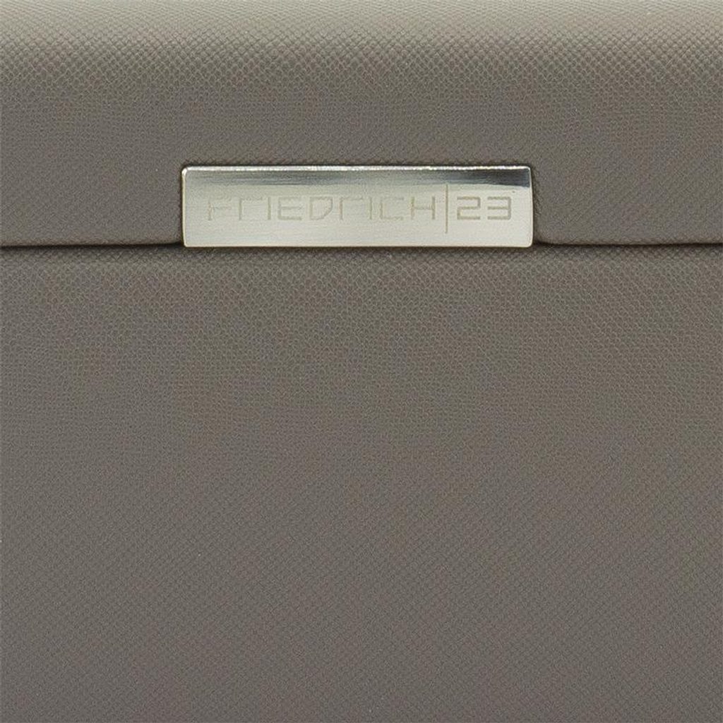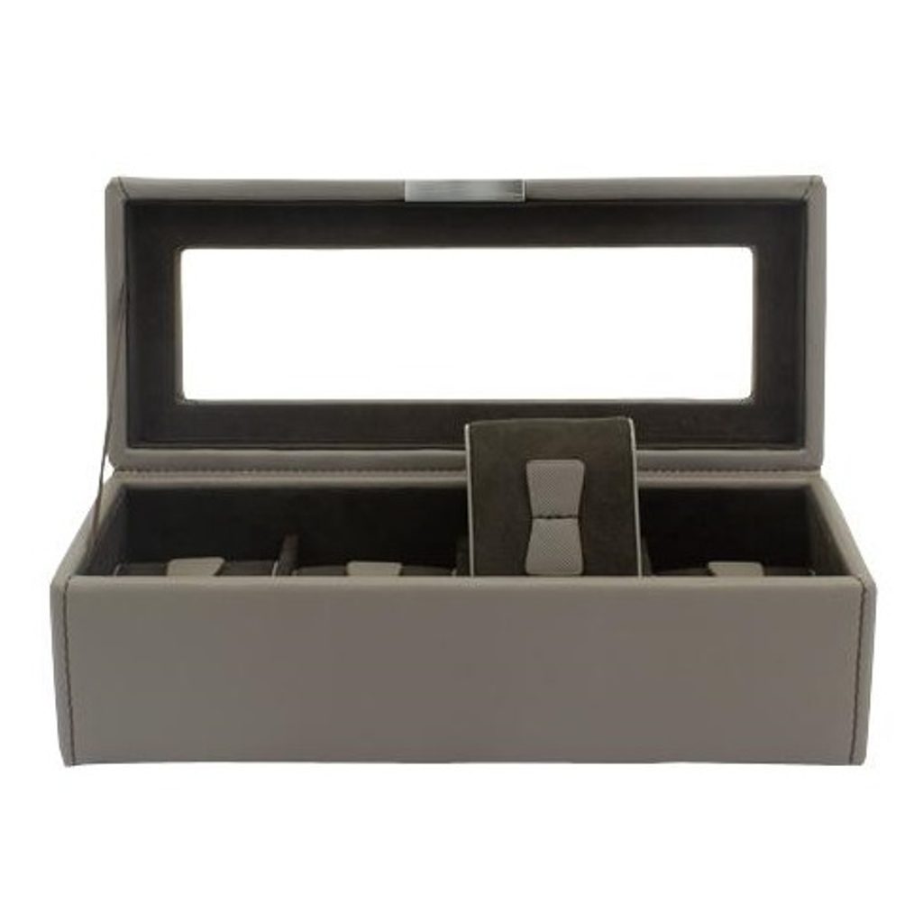 Elegant watch box Friedrich Lederwaren Bond 20115-3 with transparent lid for 4 watches. Made of grey synthetic material with dark grey suede interior.