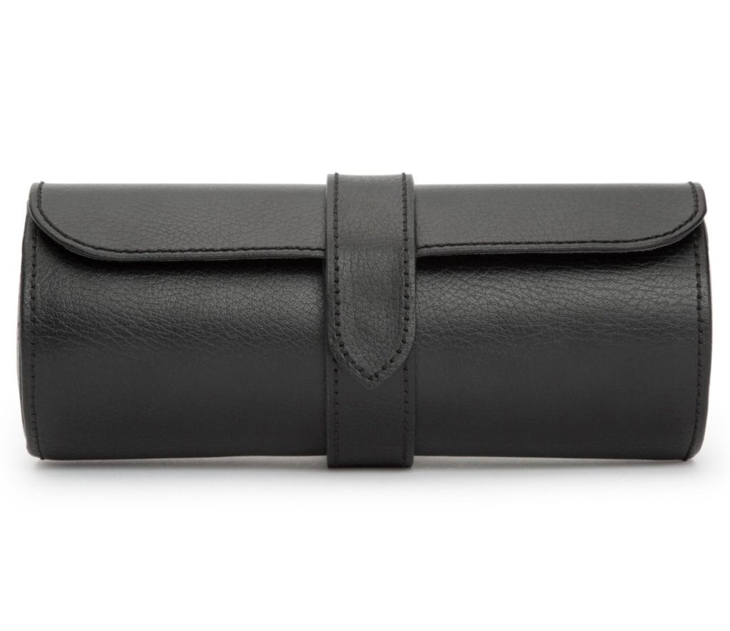 Wolf Blake 305002 is a very well crafted travel case made of fine textured leather and velvet lining, stud fastening. There are rings on the inner cushion to prevent the individual watches from touching each other. At the same time, the inner cushion hides a small pouch for e.g. cufflinks. This box is designed for 3 watches.