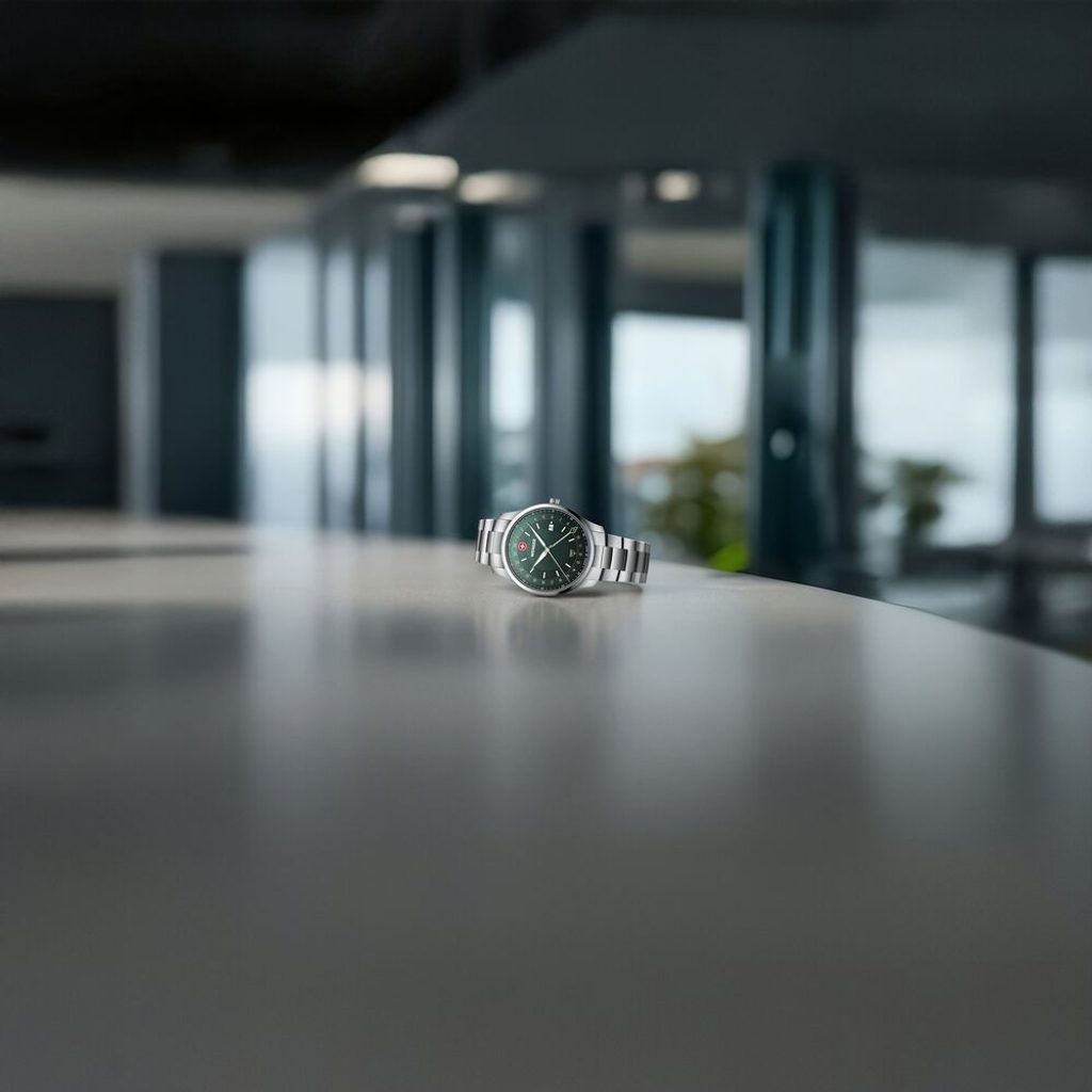 The all-new City GMT range combines timeless design with modern functionality. Labelled Wenger City GMT 01.1442.107, the Swiss Made model features a GMT function that makes it easy to keep track of multiple time zones wherever your travels take you. The longest coloured hand with a diamond-shaped ending serves this purpose.