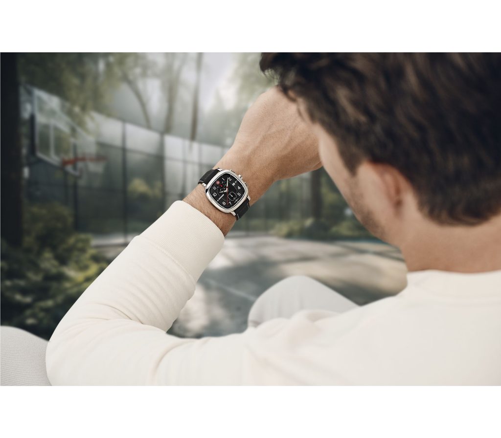 The watch will stay on your wrist thanks to the leather strap. Easy strap changing is ensured by the quick release fastening system. It is also worth mentioning the signed crown with the Swiss Cross placed classically on the right side of the case. The water resistance of this elegant watch is 5 ATM. Thanks to this waterproofness, the watch can withstand fleeting contact with water, which can be compared to, for example, splashing water, rain, etc.