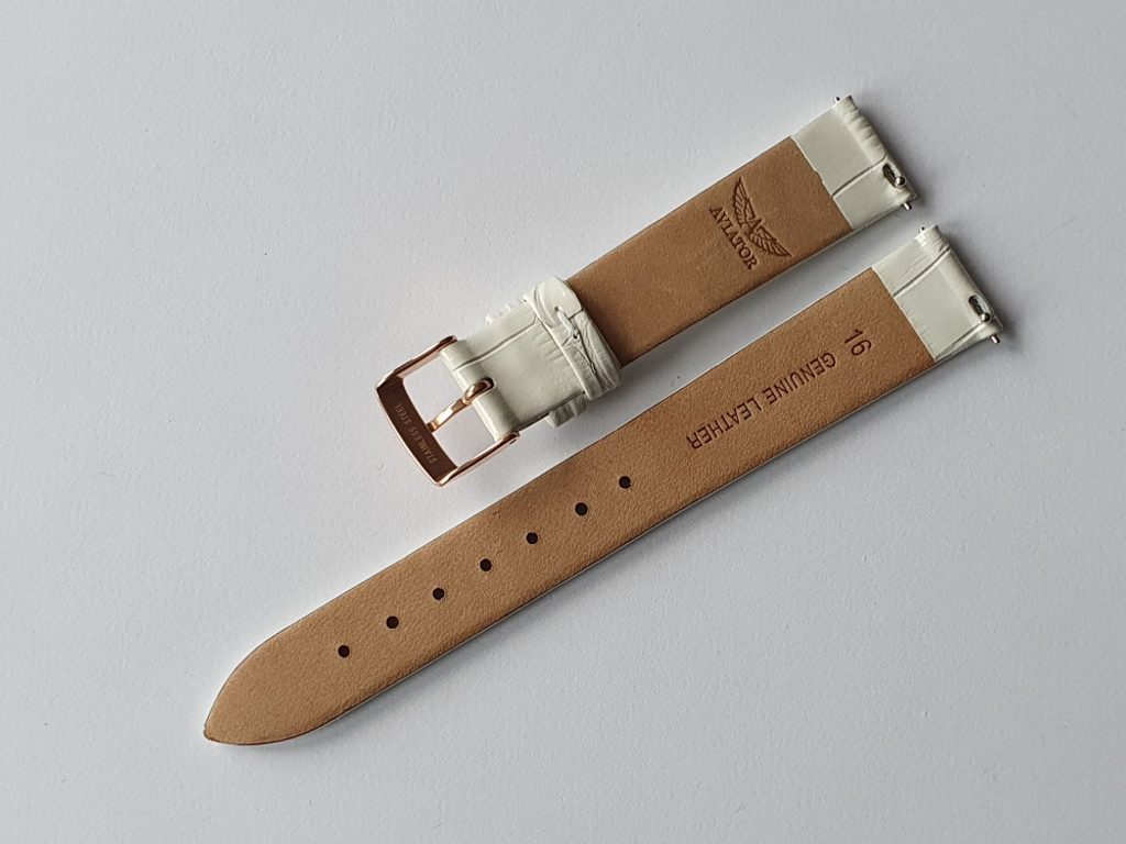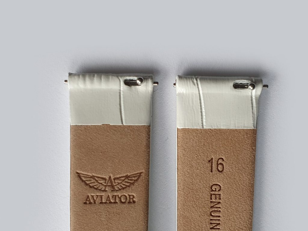 16 mm calfskin leather strap. The strap is designed for Aviator Douglas Moonflight watches, especially for model V.1.33.2.251.4