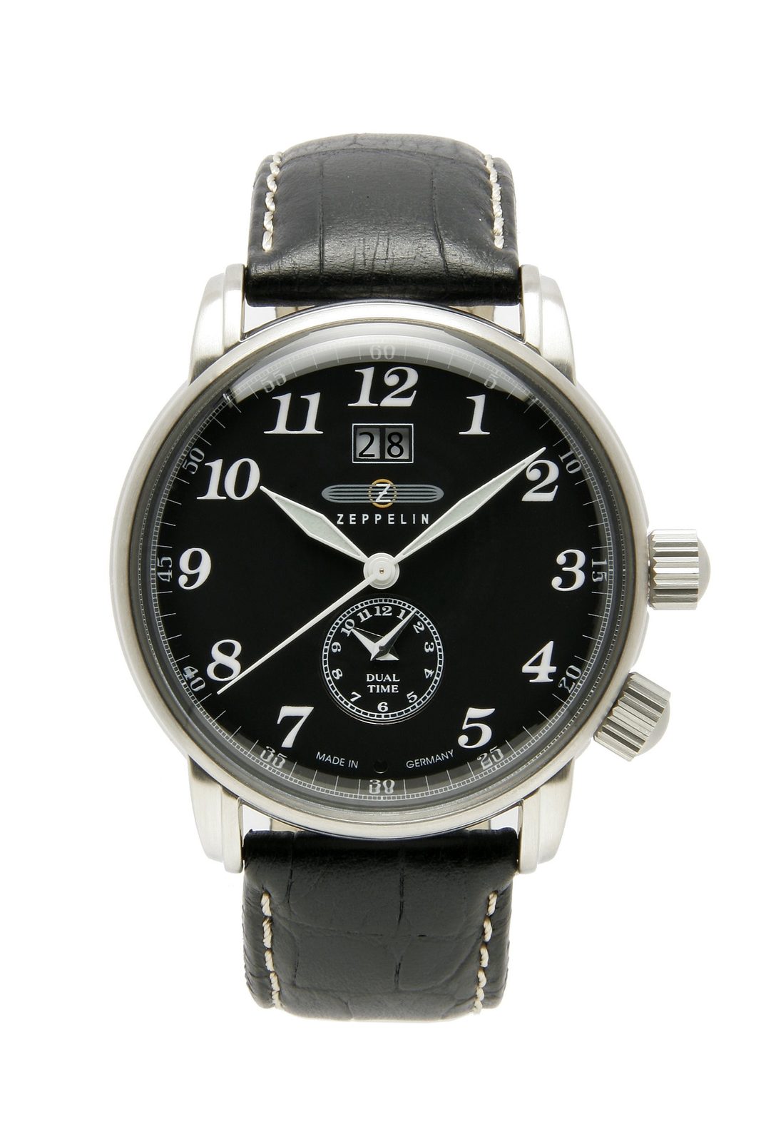 The Zeppelin 7644-2 from the LZ127 Graf Zeppelin model series is equipped with a date display at 12 o'clock. The dual time function makes it easy to find out the current time in the second time zone.